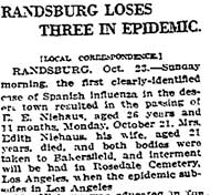 mining town of Randsburg did not escape the epidemic either. James